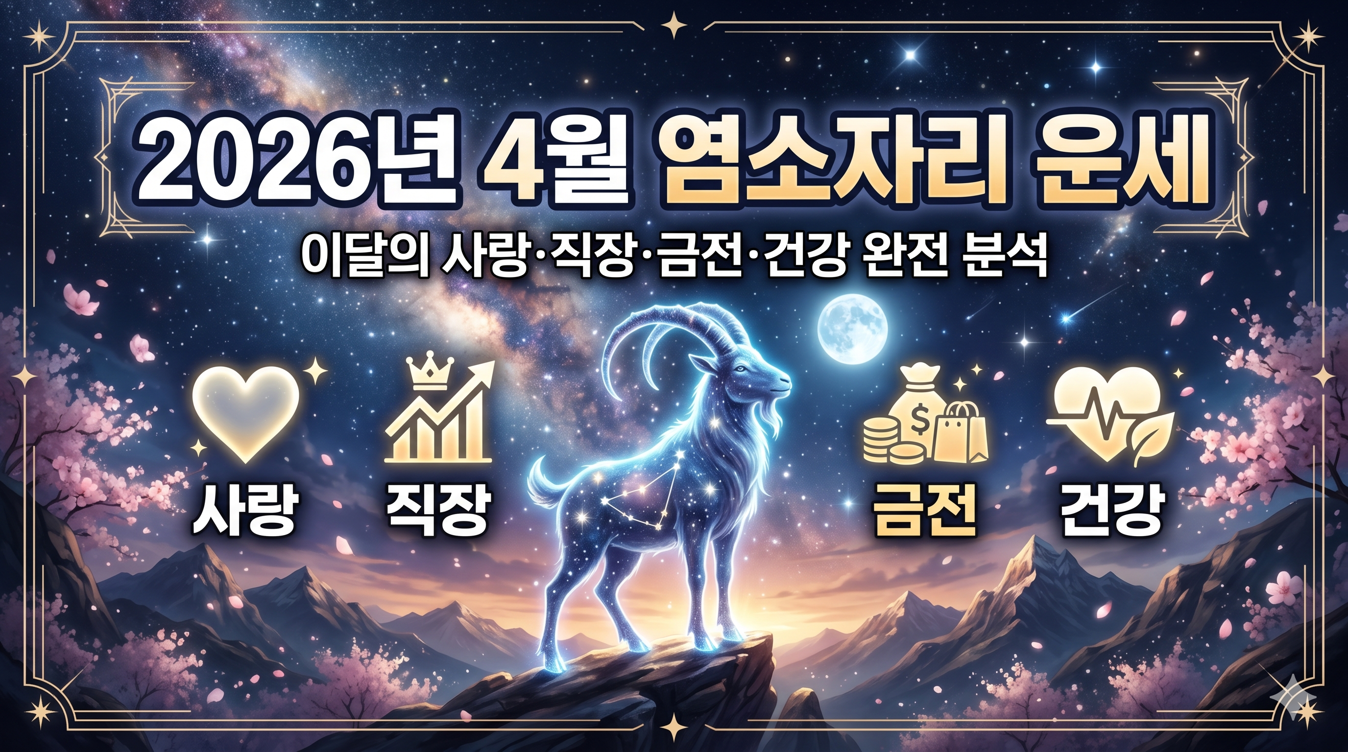 | 키워드 | 염소자리 4월 운세, 2026 염소자리 운세, 염소자리 월간 운세, 염소자리 사랑운, 염소자리 직장운 |